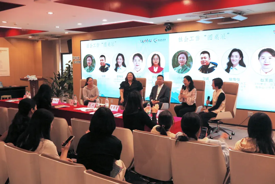 通过各位嘉宾的分享,大家也都对社工实务能力提升有了更加深刻的认识和了解,为了有更多的互动,开展主题为深耕实务·精进服务——社工日常服务能力提升路径共研的圆桌论坛。