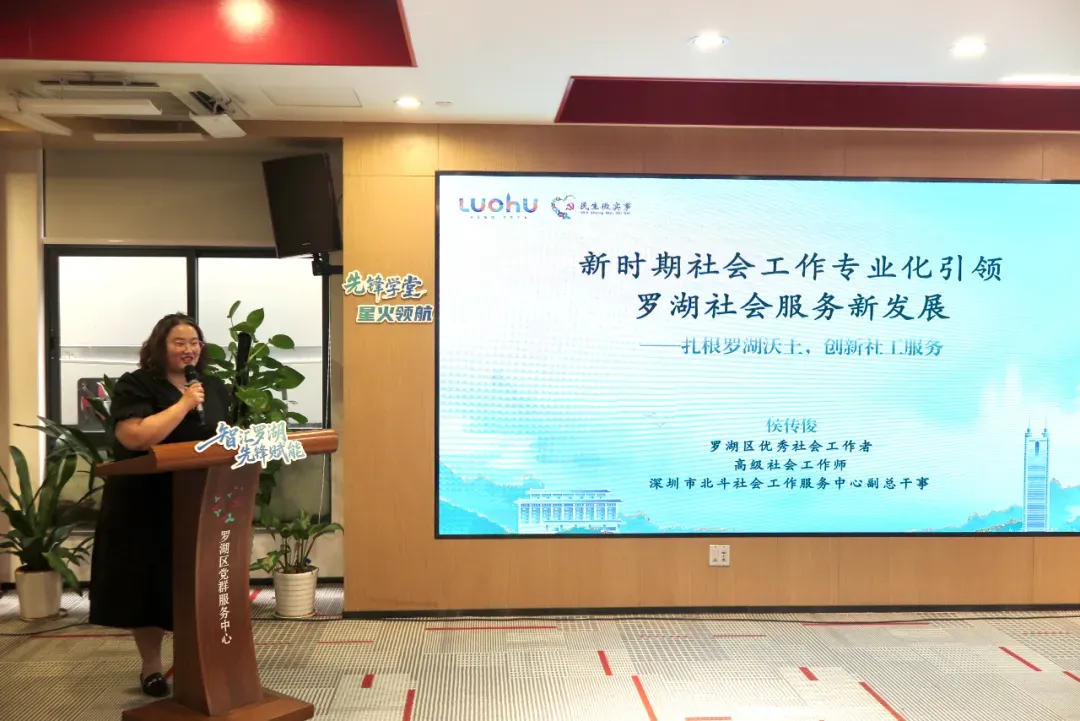 深圳市北斗社会工作服务中心副总干事侯传俊则以《扎根罗湖沃土,创新社会服务》为题,通过机构在罗湖扎根的几个社区服务项目介绍,探讨了本土社工服务的创新方向。